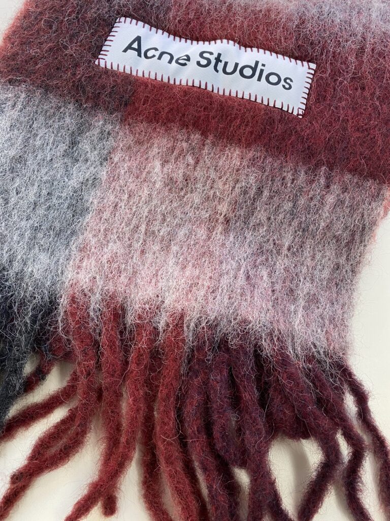こちらは、レッド、バーガンディー、ダークグレー、ホワイトが混じったストールです🧣
