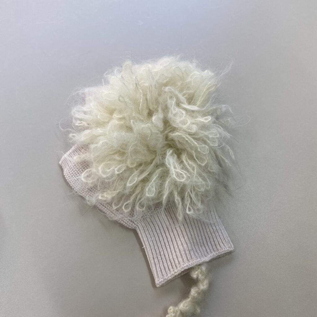 上質な梳毛ウールとへアリーなモヘヤ混のフワフワなお花がとても可愛いです🌼