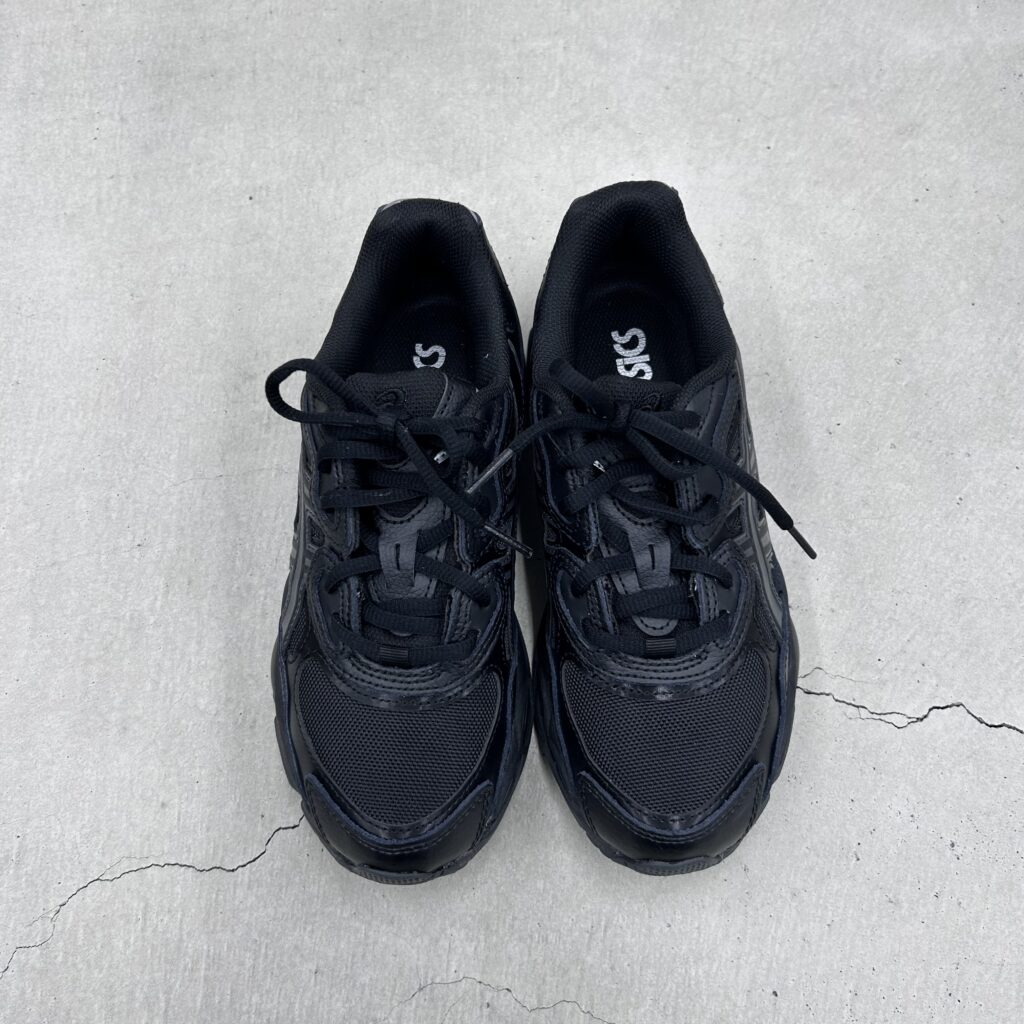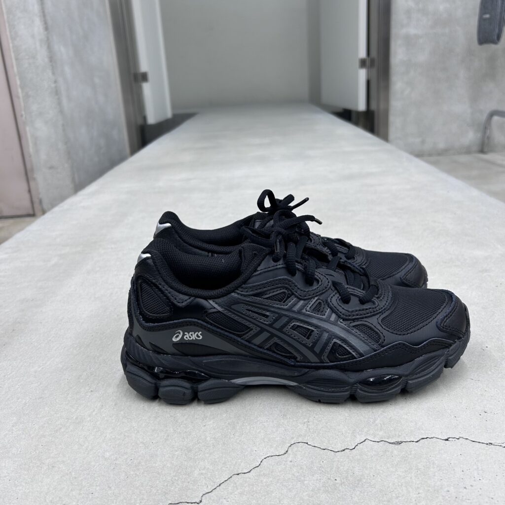 真っ黒のスニーカーもスタイリングに合わせやすくシーズン問わず活躍するタイプです。