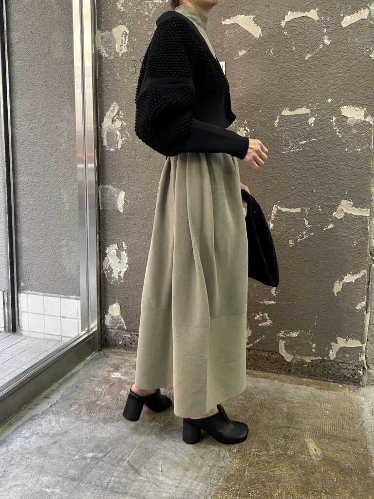 裾の編地を変えることによって、少し重さを持たせているので落ち感があります。