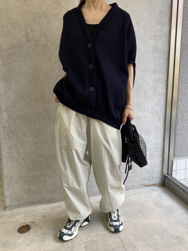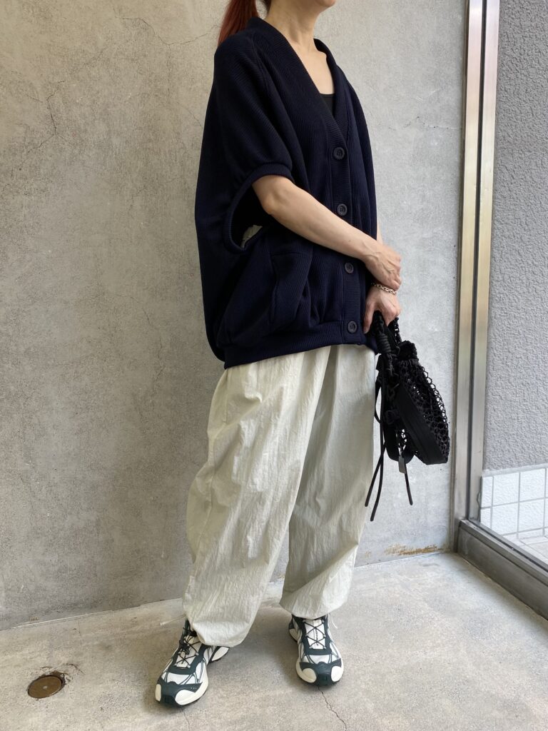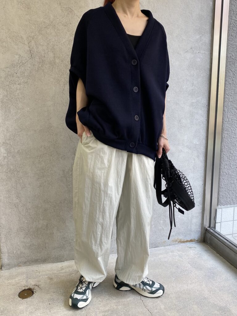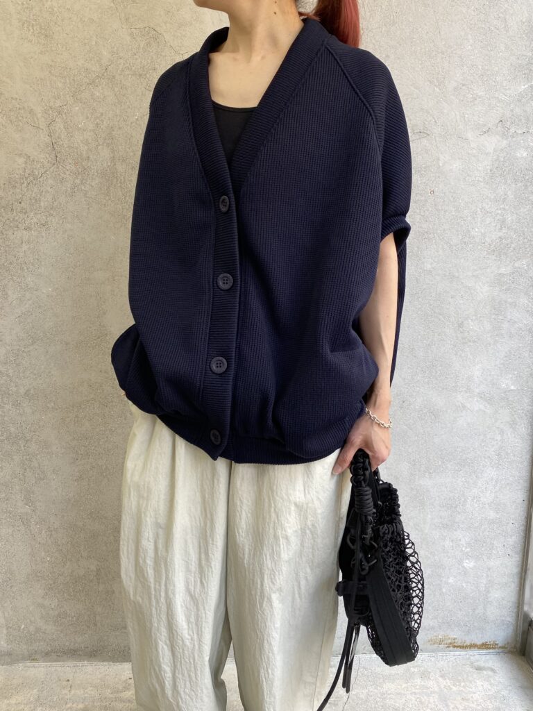 vest/ COGTHEBIGSMOKE: NEELA PUFF SLEEVE CARDIGAN / HI-LO GAUGE KNIT-LIKE JERSEY -NAVY-     ¥28,600-
