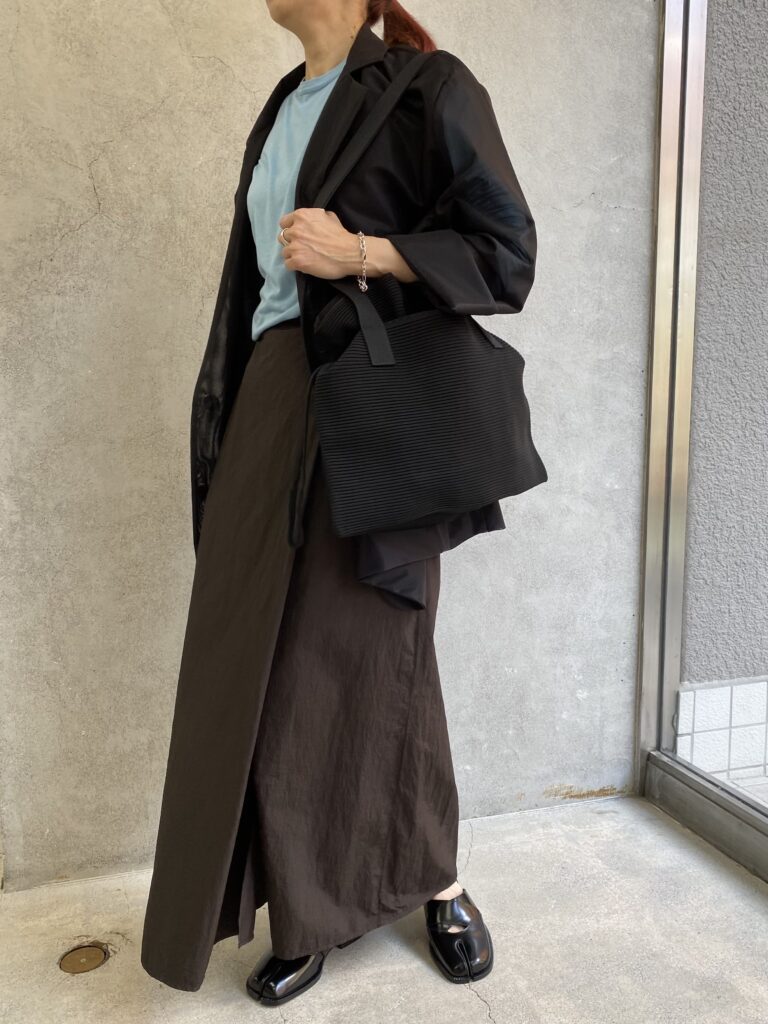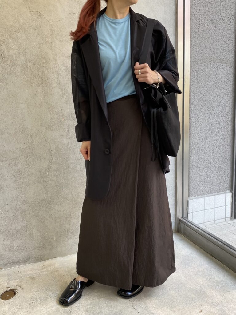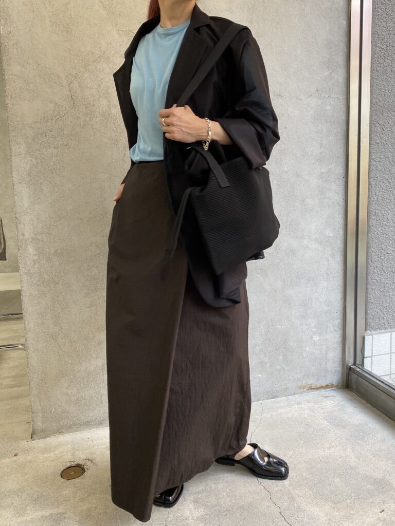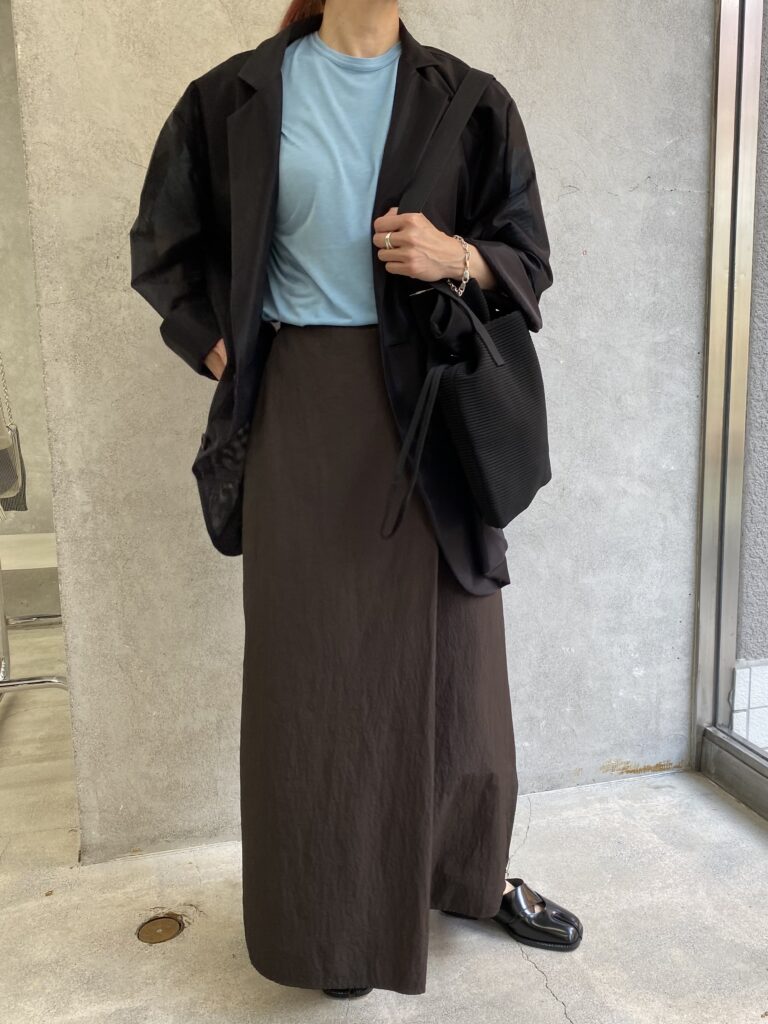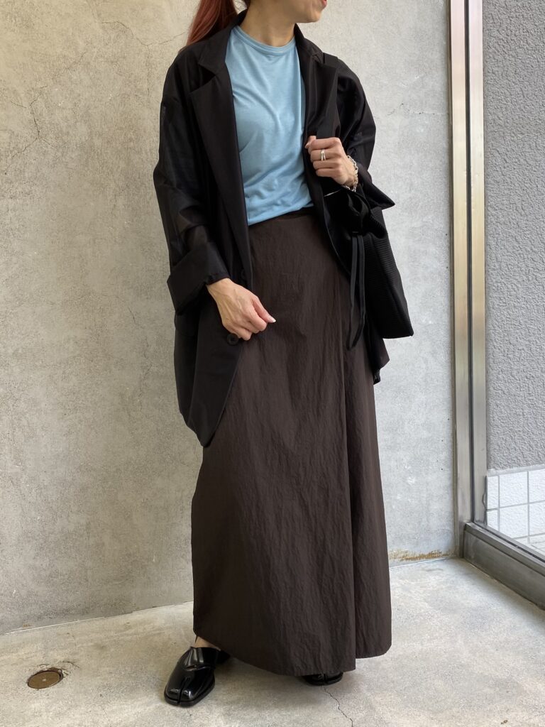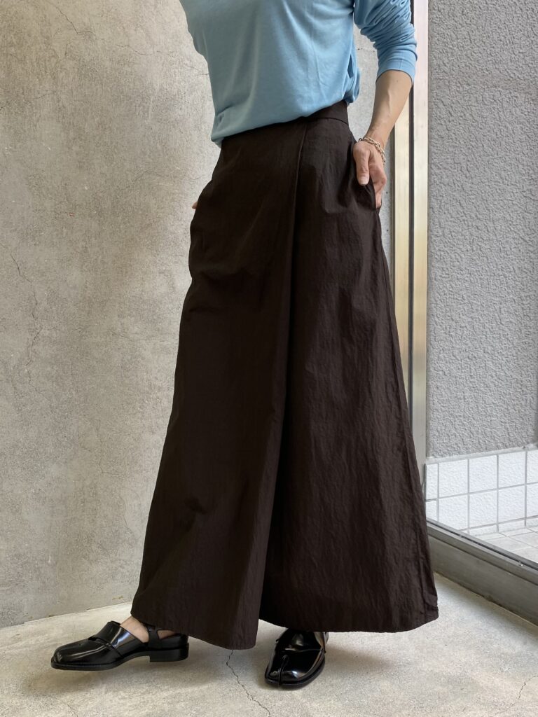 skirt/ ATON: HAND DYED NYLON WRAPPED SKIRT -BROWN-      ¥53,900-