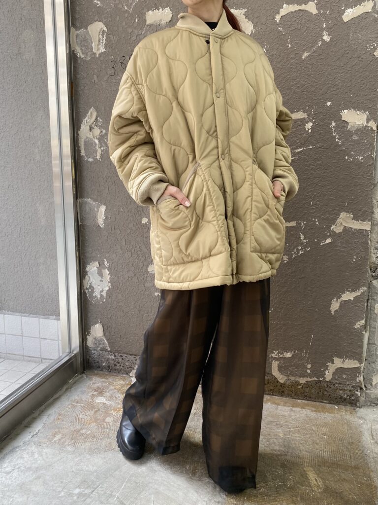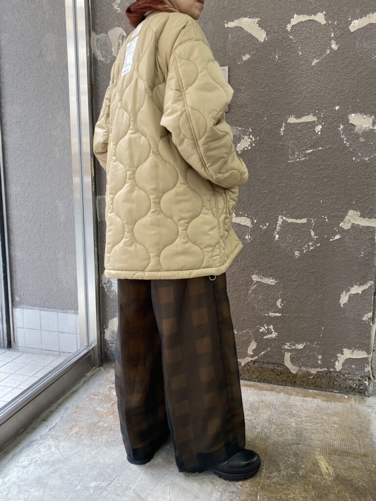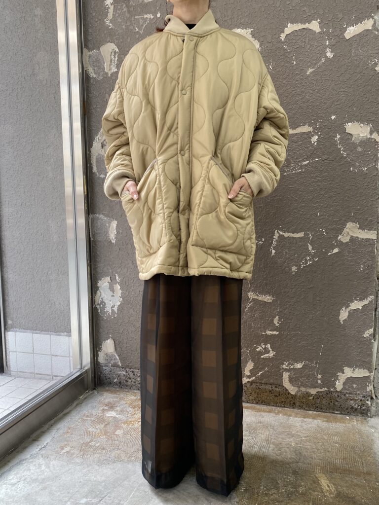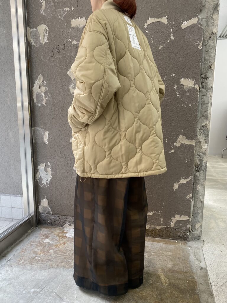 先ほどご紹介させていただいたキルティングの上にも羽織ることが出来るので寒い時にはレイヤードしても◎