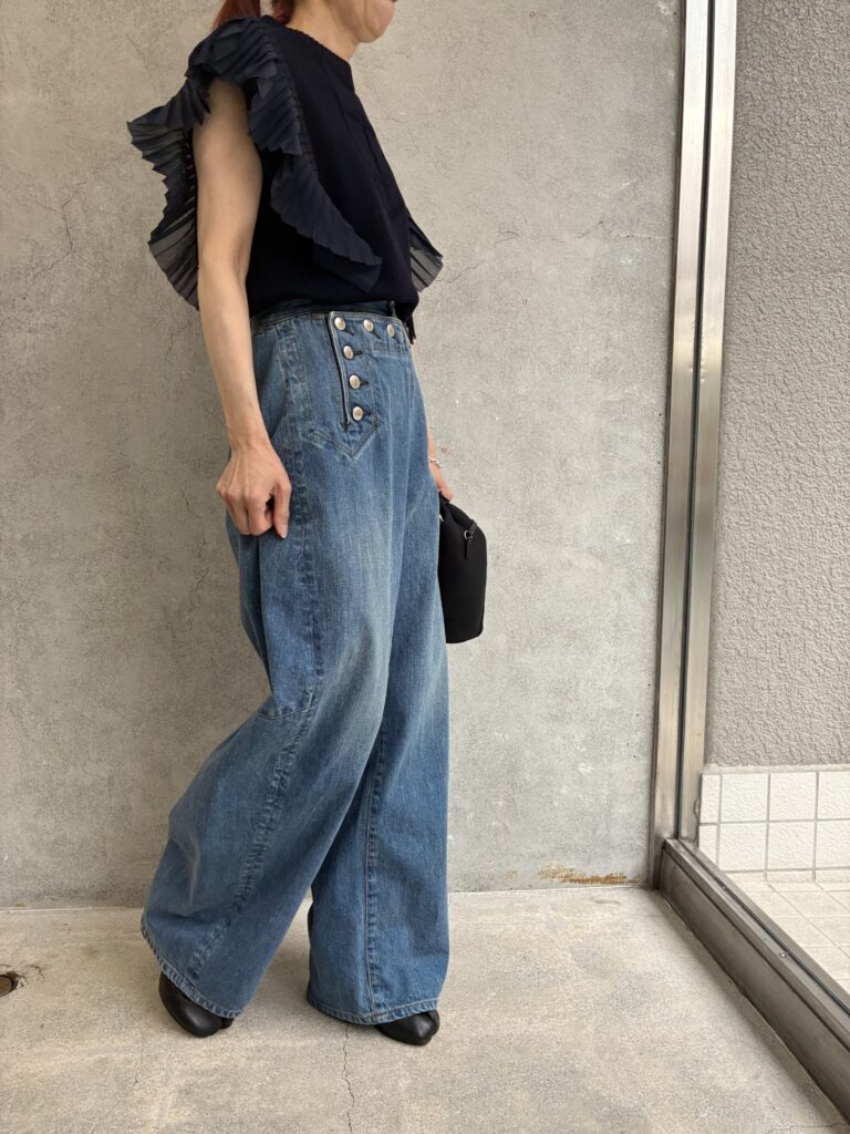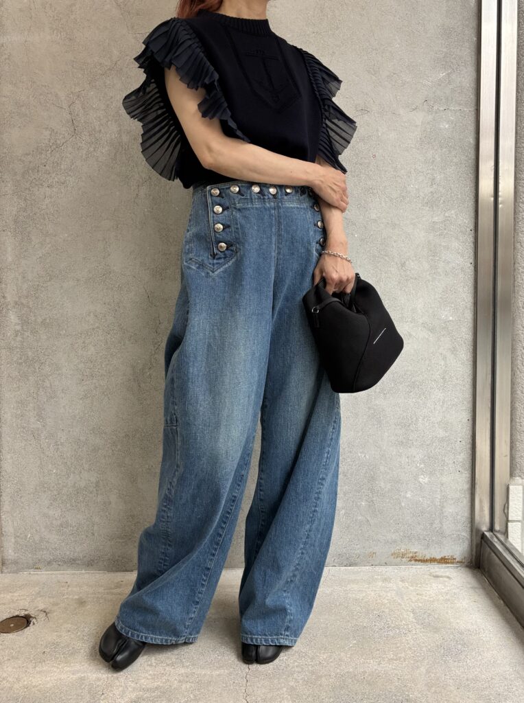 いかりマークを配したデザインTOPSにセーラーデニムコーデ。