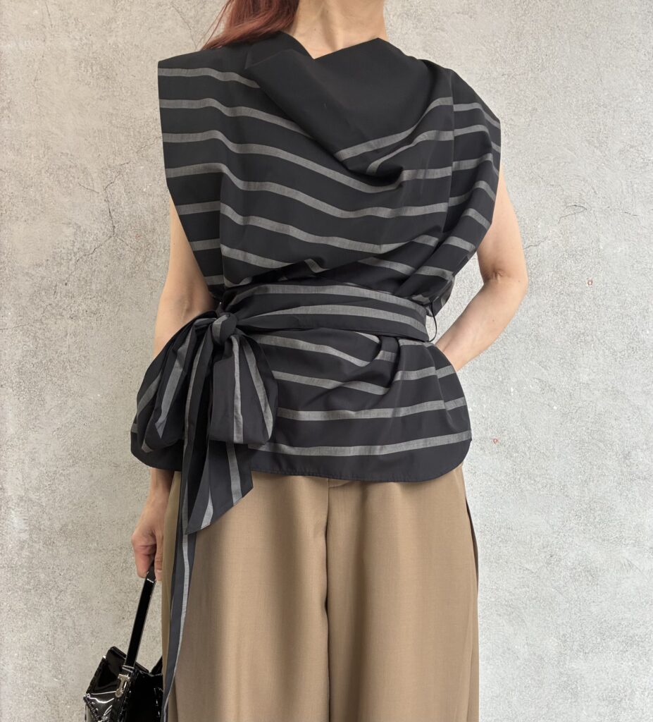 ボーダーTOPS にドレープをプラスし、女性らしいエレガント感を演出してくれます。