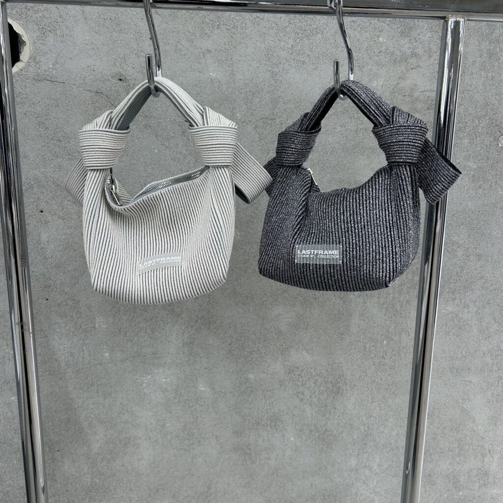 着物の帯から着想を得てデザインされた結びがPOINTのバッグ。