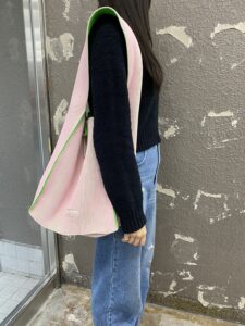 KASANE REVERSIBLE TASUKI TOTE LARGE -LIGHT PINK×NEON GREEN- ¥37,400-
