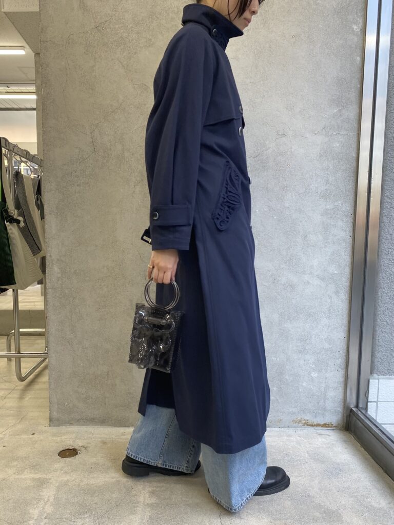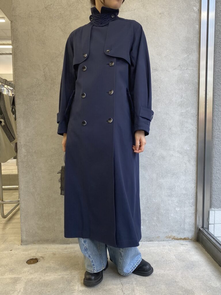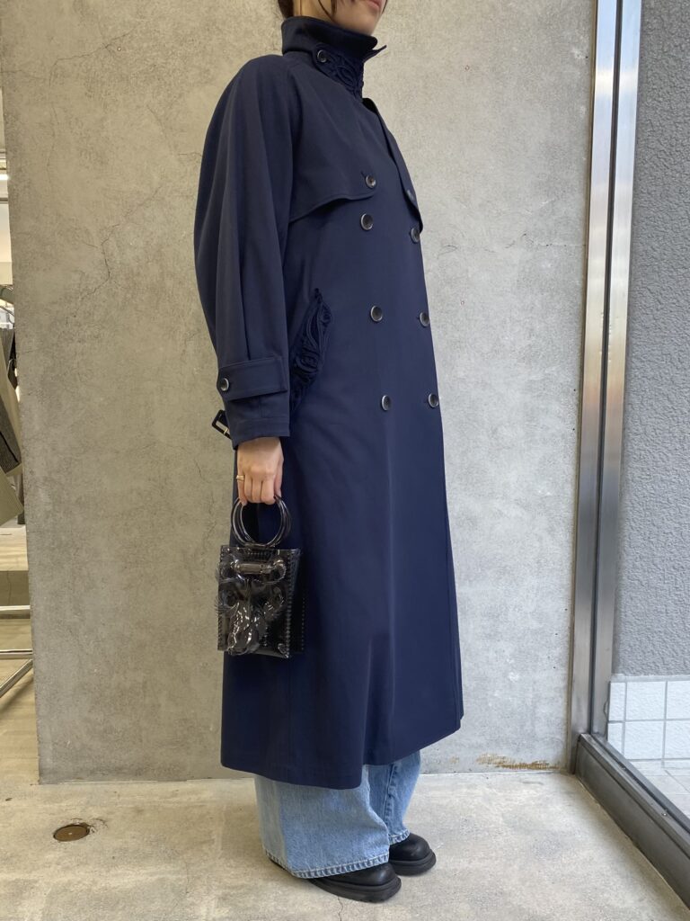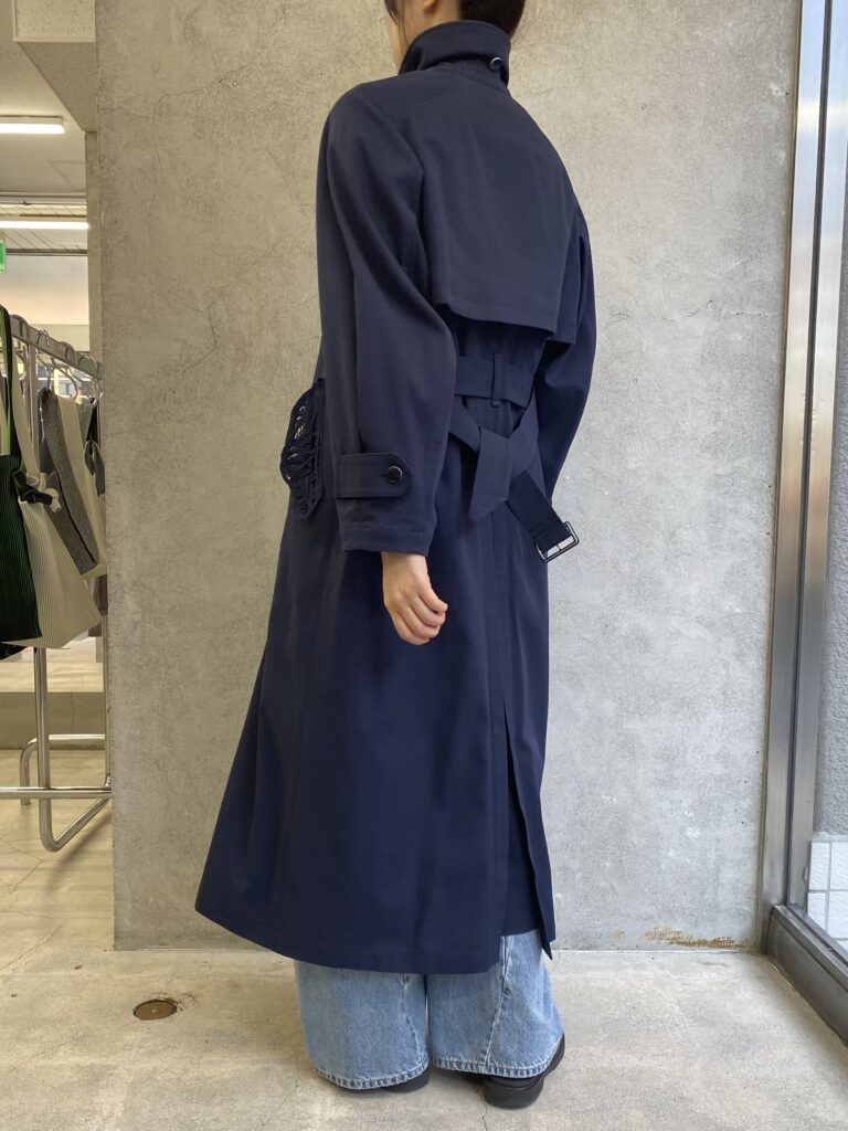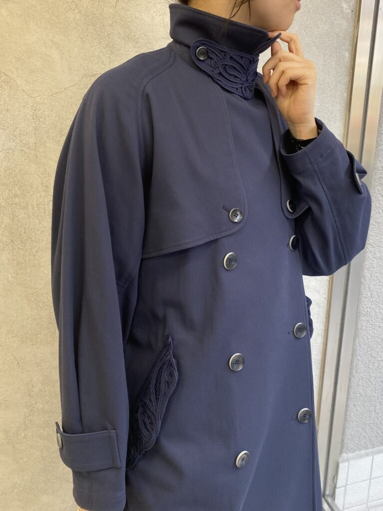 outer/ Mame Kurogouchi: Cording Embroidery Detailed Trench Coat – navy     ¥190,300-