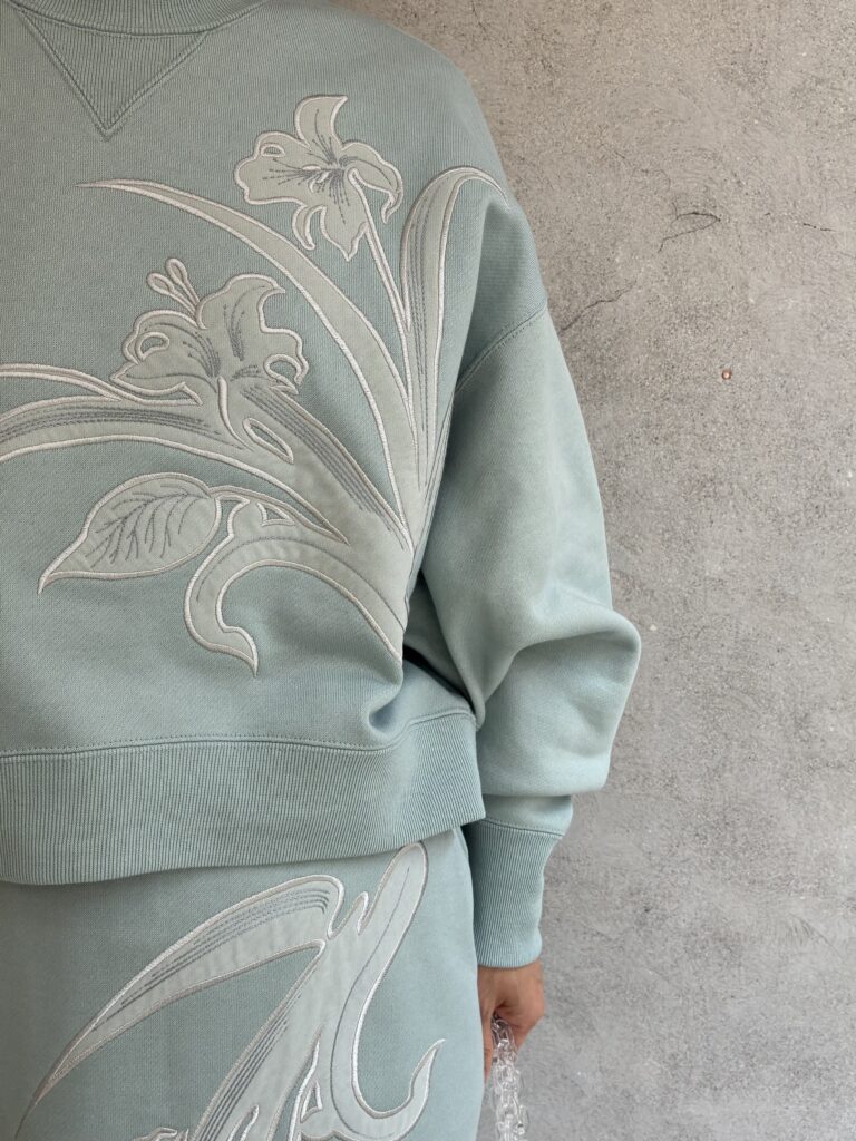 sweat/ Mame Kurogouchi: Floral Embroidery Short Sweat Top -LIGHT BLUE- ¥62,700-