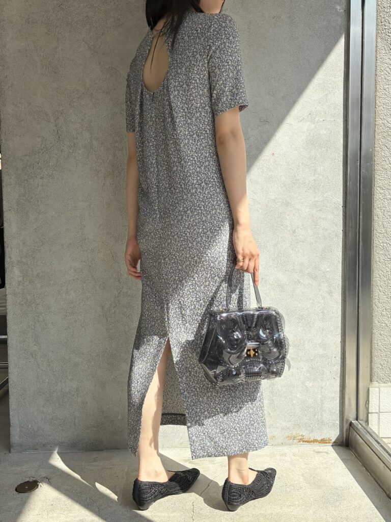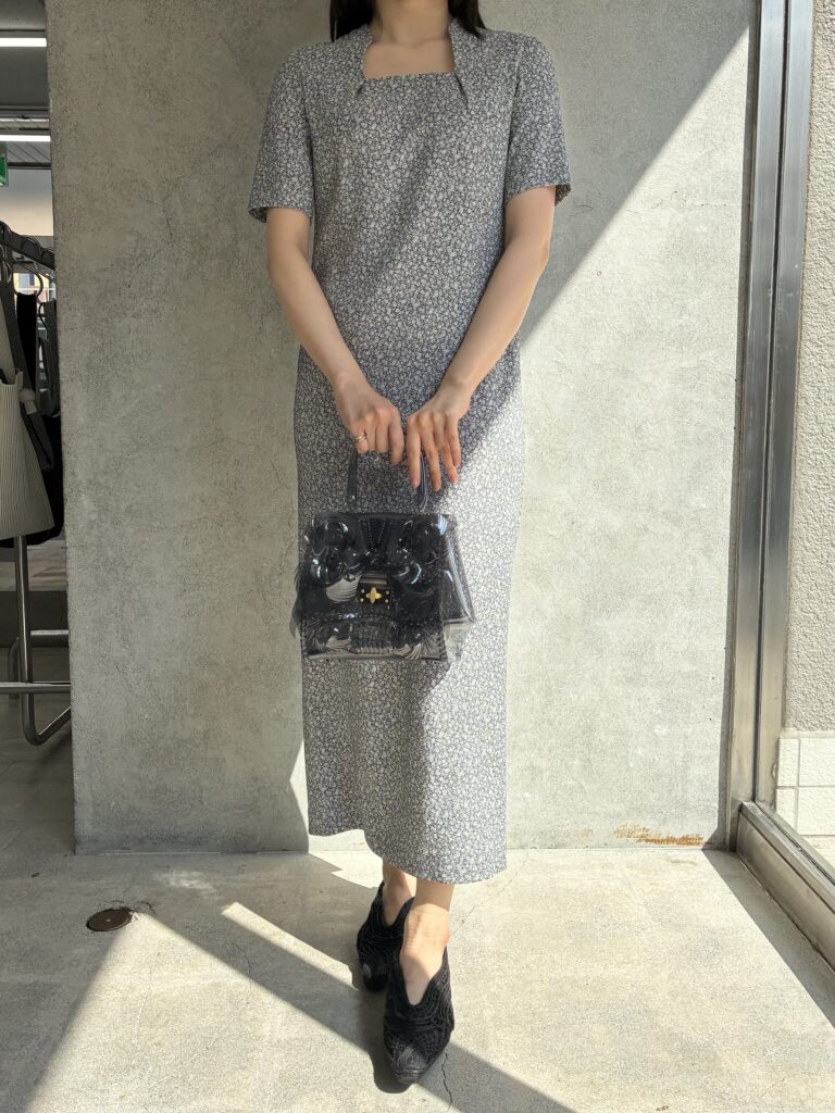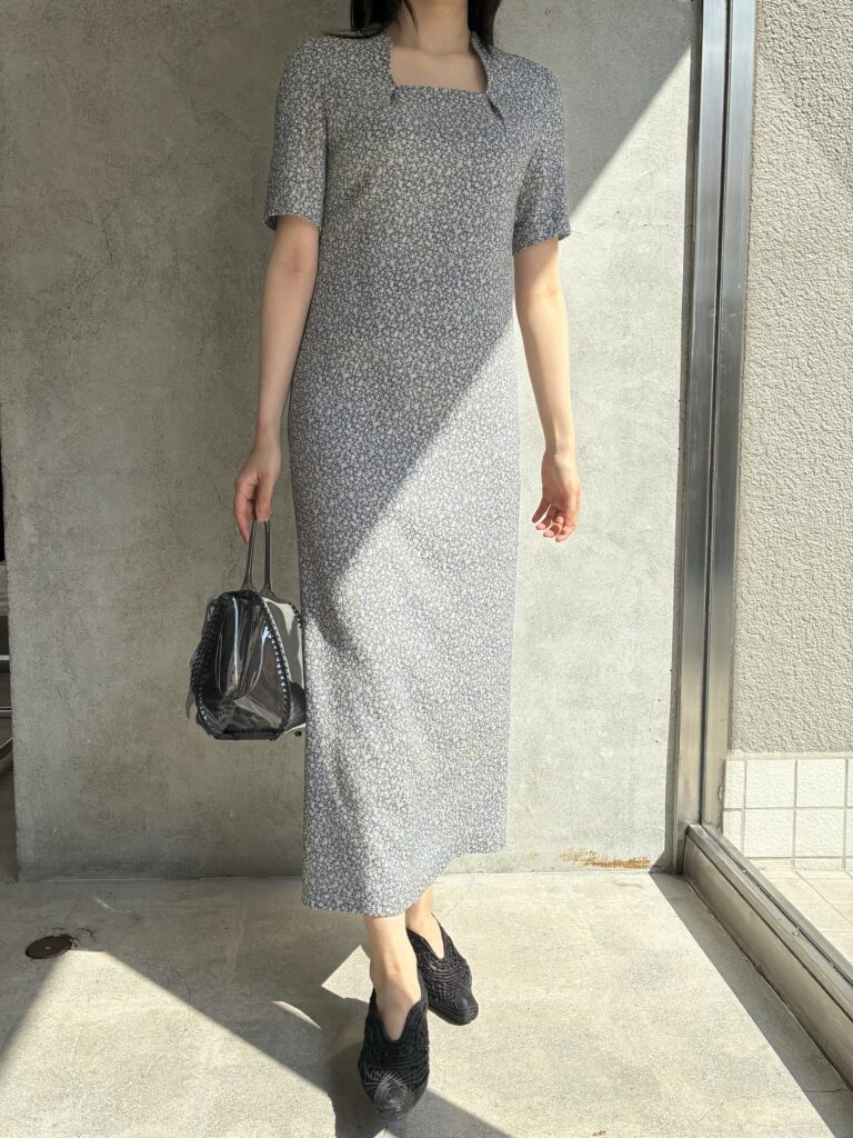 one-piece/ Mame Kurogouchi: Floral Jacquard Square Neck Dress -GREY- ¥68,200-