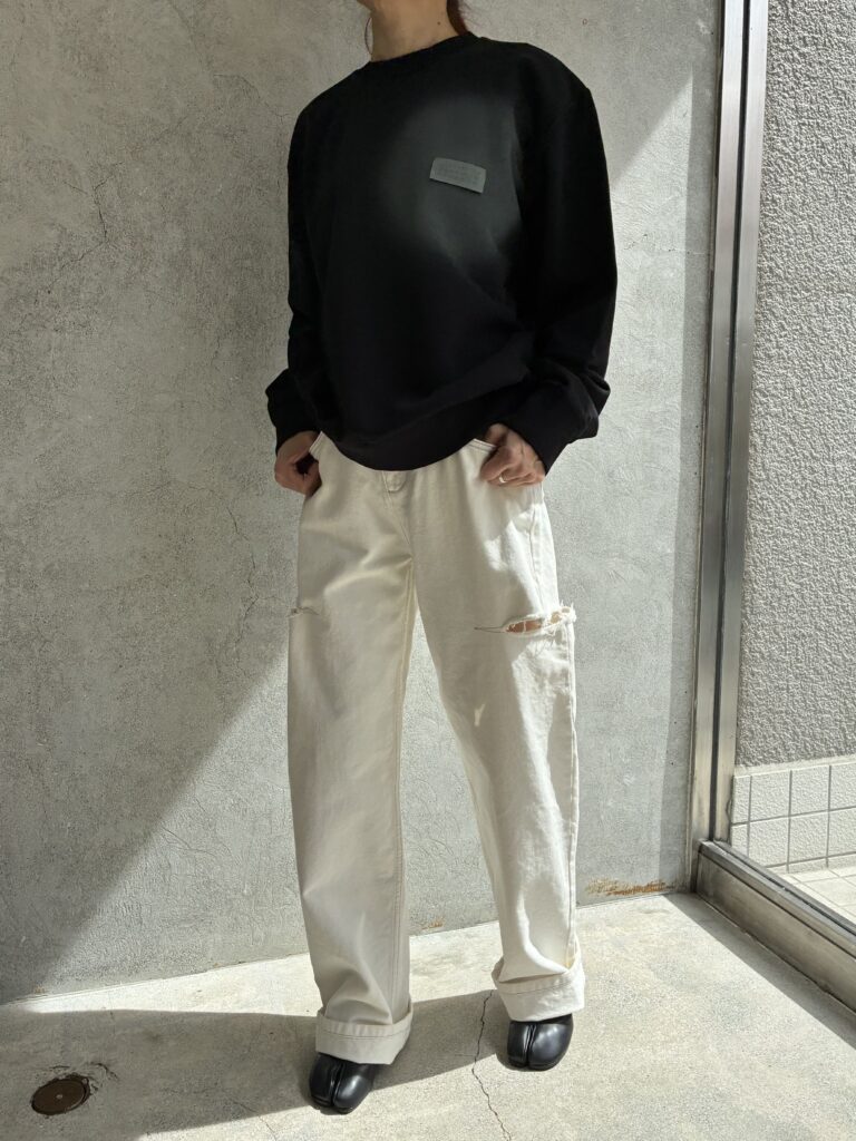 今シーズンのMM6のスウェットは胸にあるMM6のタグの上からドットをスプレーしたようなプリントがポイントです。