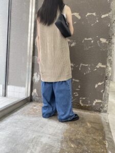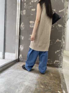 パンツは、数シーズン前から出ている人気の型のデニムパンツ。