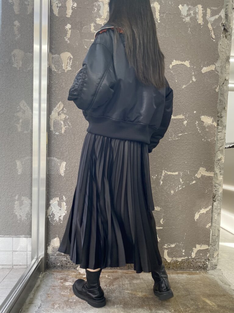 skirt エステルサテンプリーツスカート-BLACK- ¥75,900-