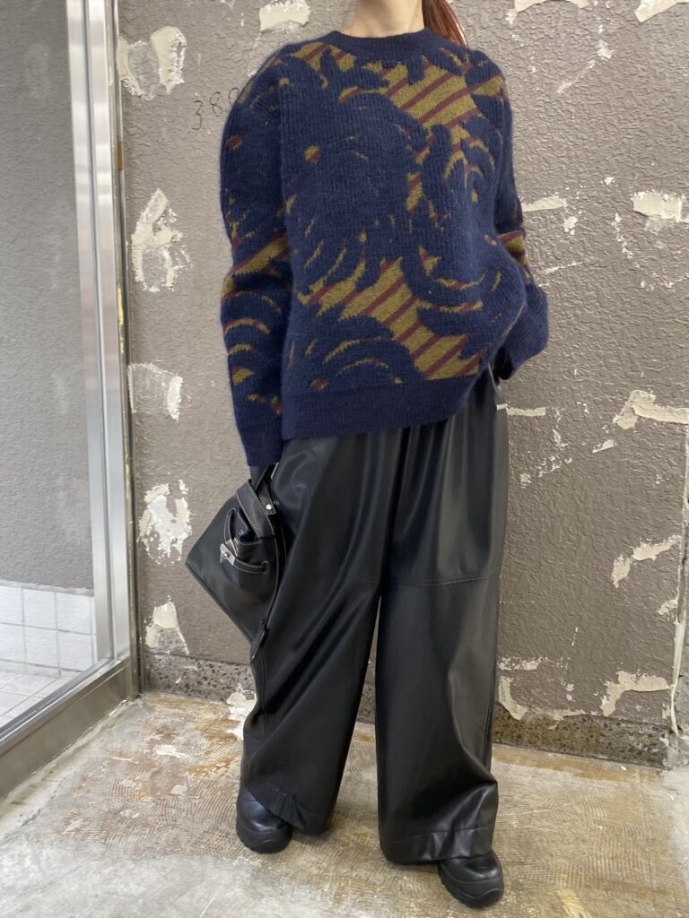 ニットは、ドリスヴァンノッテンのストライプとボタニカル柄の掛け合わせた柄がドリスらしいニット。