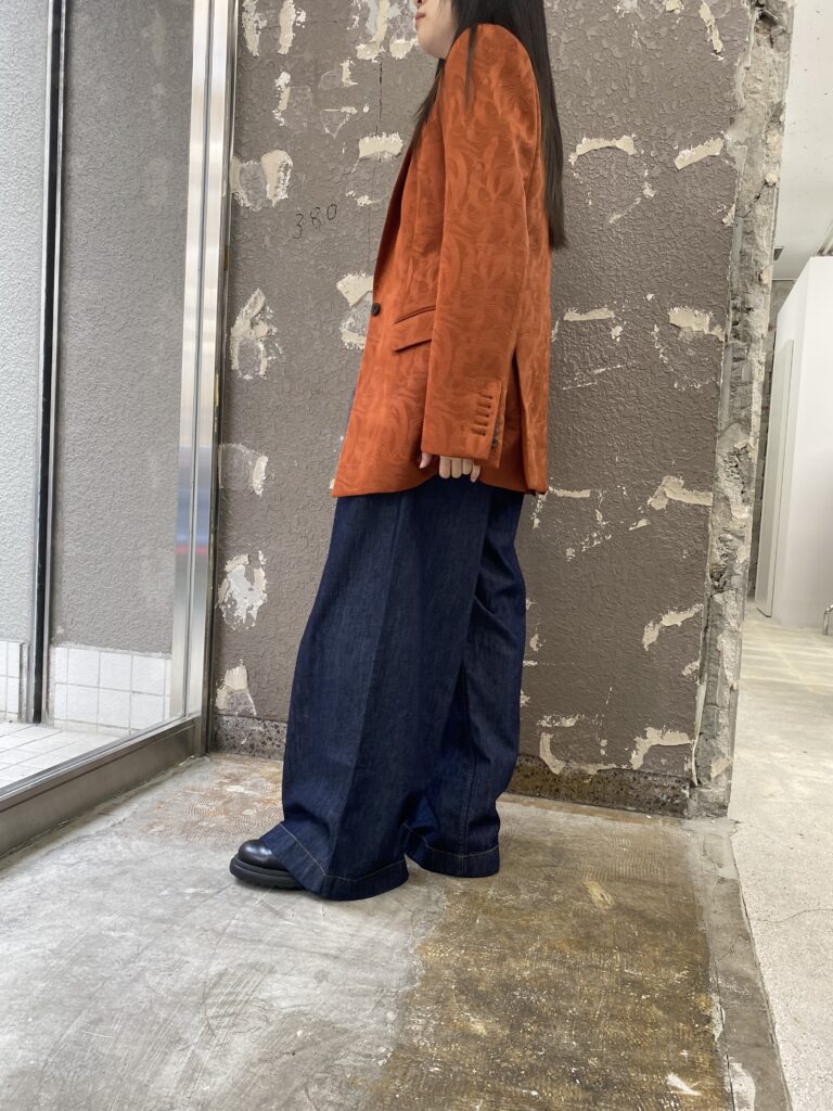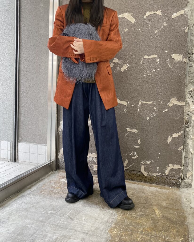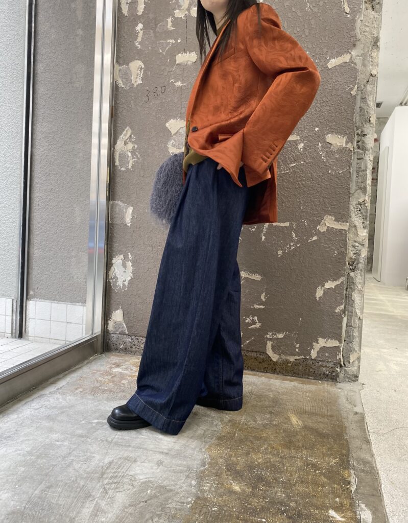 ウエストがイージータイプでワイドレッグ、そして柔らかくて落ち感がある大人デニムです。