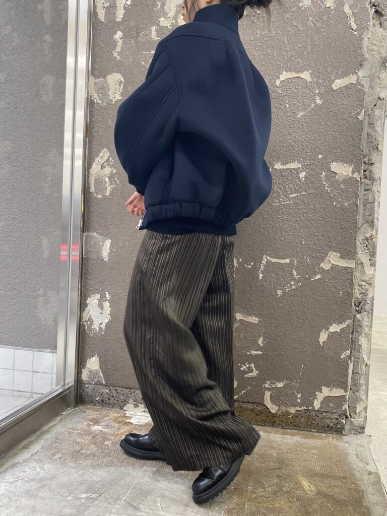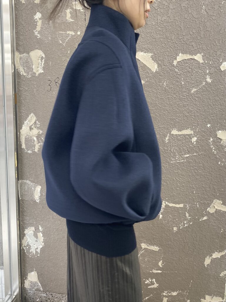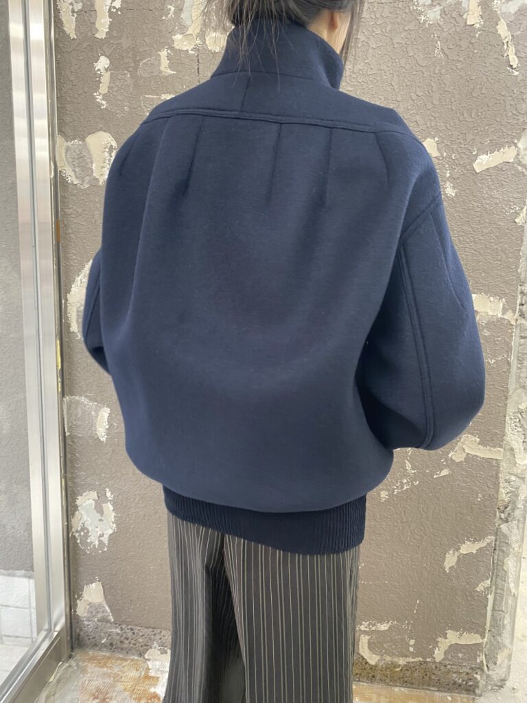 こちらは、スタンドカラーのバルーンシルエットショートコートです。