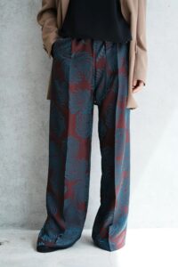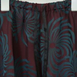 フローラル柄のウエストイージータイプのストレートパンツ。