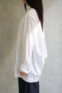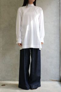 ポプリン素材でボリュームを抑えることもできるのでニットやジャケットなどレイヤードしていただけます。