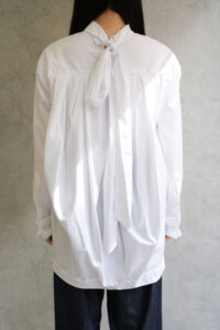 ハイネックにタイが付いたデザインシャツです。タイは後ろで縛ったり、ネックに巻いたりとアレンジしていただけます。
