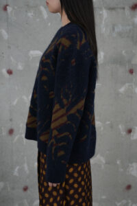ストライプとボタニカル柄の掛け合わせた柄がドリスらしいニット。